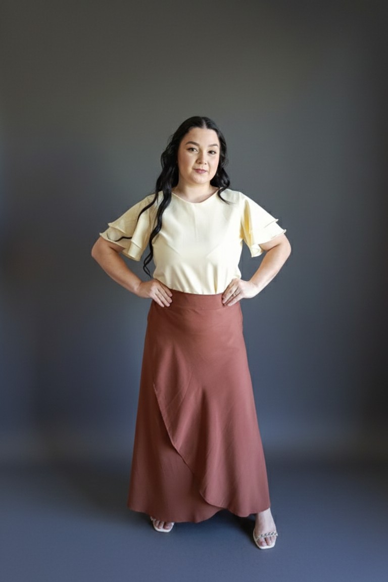 Saia Envelope Marrom em Viscolinho – Conforto e Elegância para o Dia a Dia